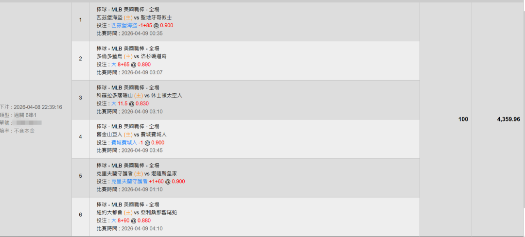 4/9 MLB 6*1 分享!喜歡的朋友請隨意享用!祝大家都能順利過關!!!