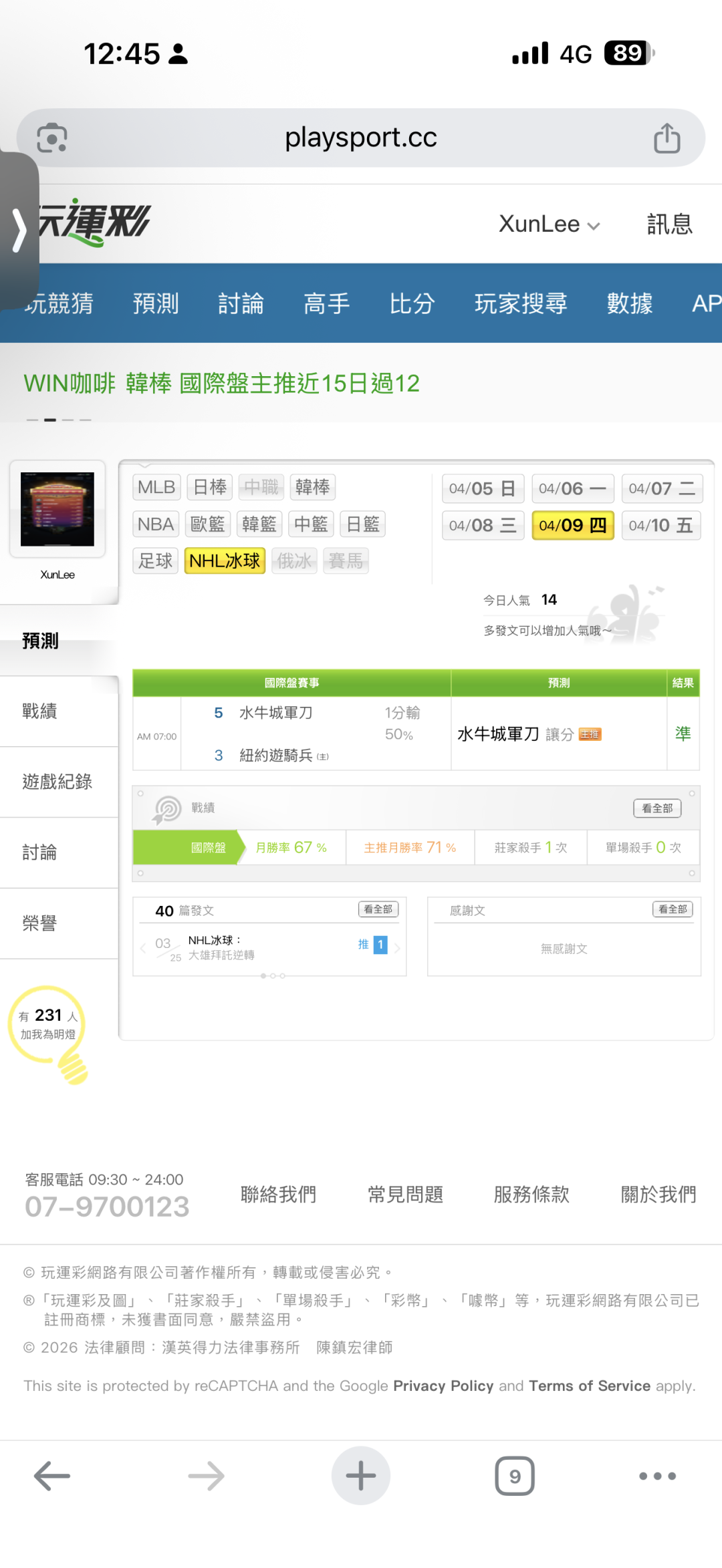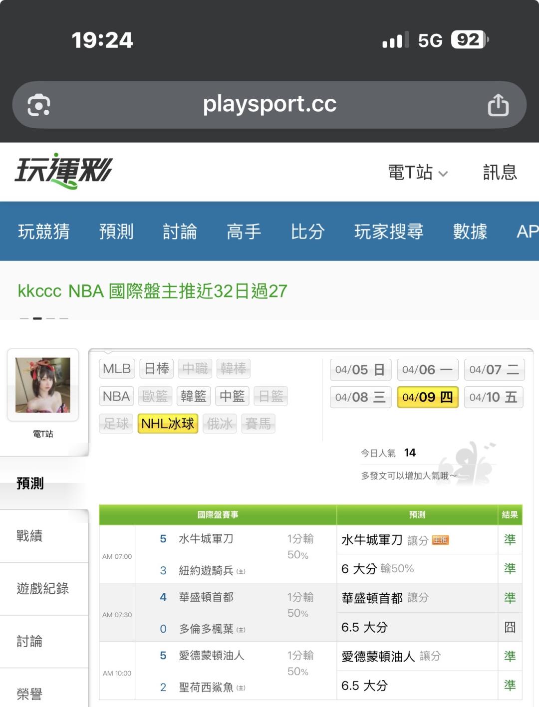 >> 好奇今天冰球有沒有殺手贏的