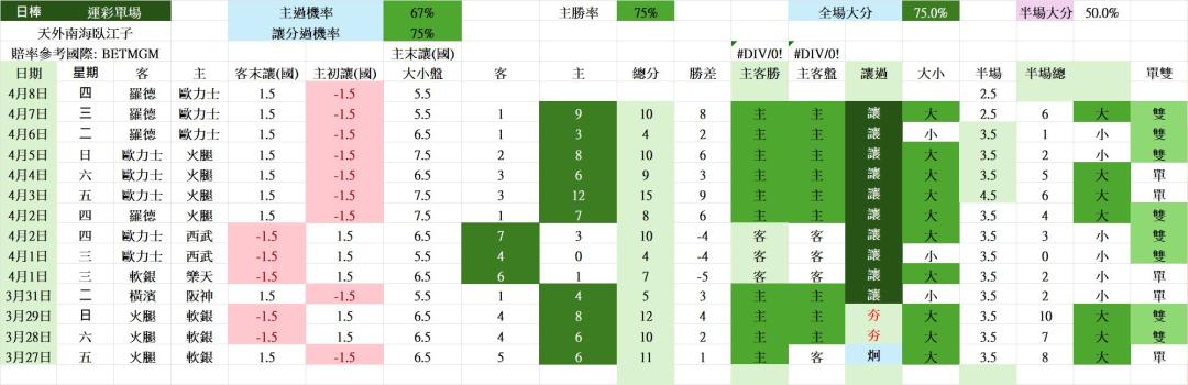 >> 4/9 日棒 運彩單場 羅德 vs 歐力士