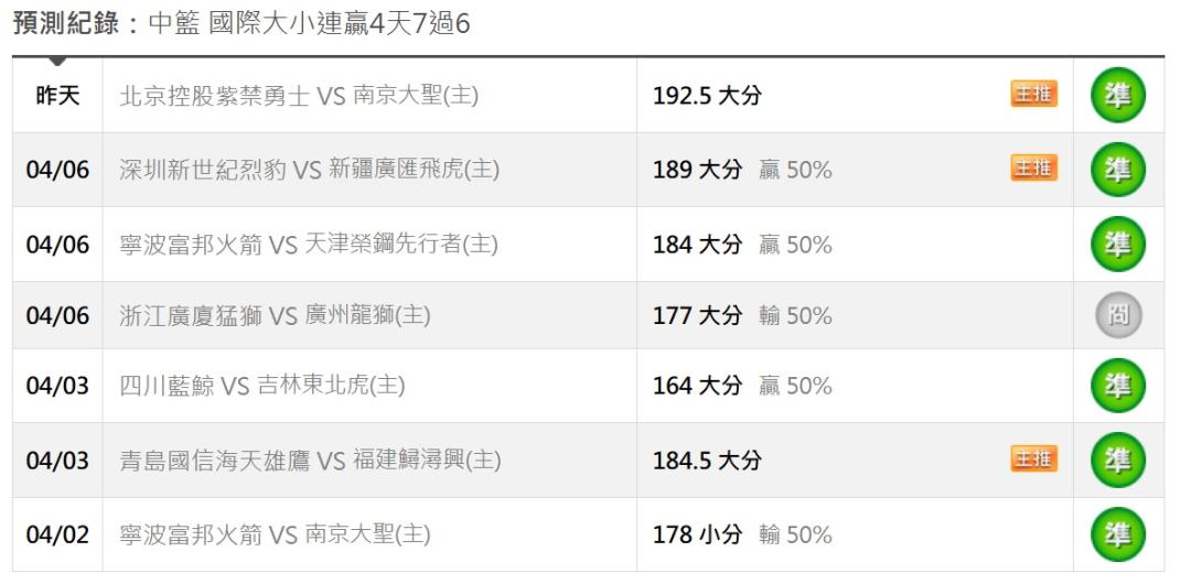 >> 中籃分享(國際大小 連贏4天7過6,國際主推近7日過6)