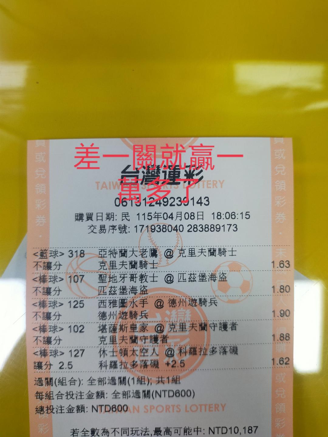 >> 今天的球賽真是可惜了,不然又賺一萬