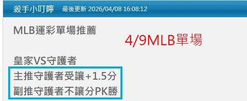 MLB >> 4/10MLB國際連贏2天6過5 今小叮嚀推薦2場單場:守護者受讓PK&響尾蛇受讓PK都抓到 特價