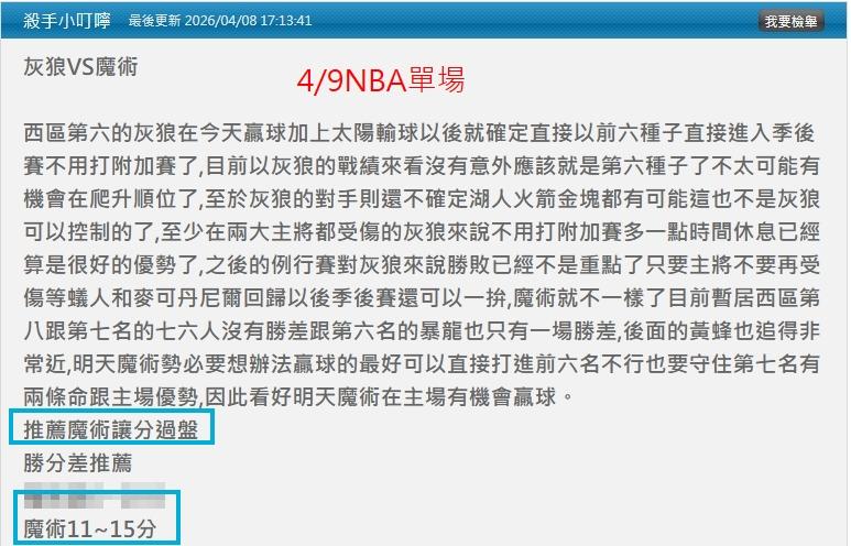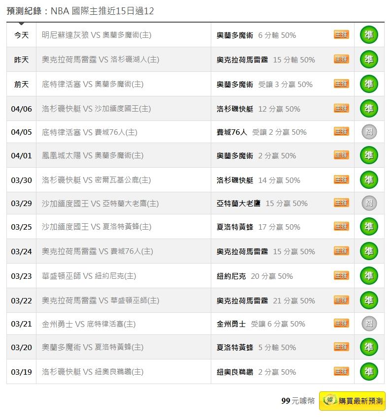 NBA >> 4/10NBA國際主推近15日過12 今天小叮嚀分析文推薦單場:魔術讓分+贏12分勝分差都抓到