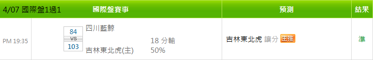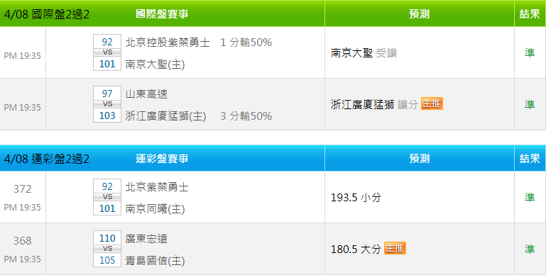 >> 4/09 中籃推薦【國際讓分近7日 14過11】【昨日雙盤 4過4】【免費場歡迎參考】【今日特價】