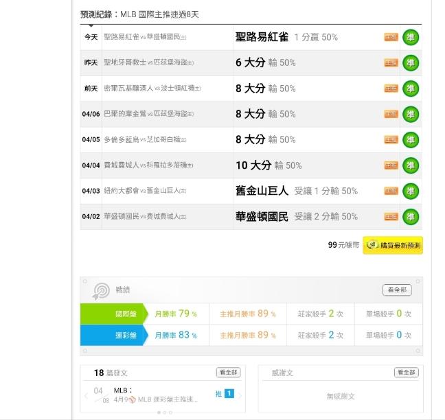 MLB >> 4月10⚾ MLB 國際盤主推連過8天 勝率榜全部第一名 參考看看