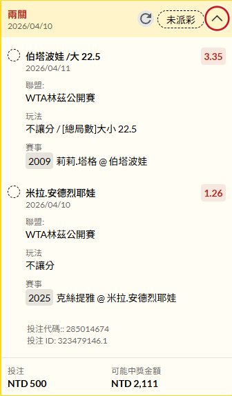 網球 >> 4/10 ATP、WTA 網球公開賽