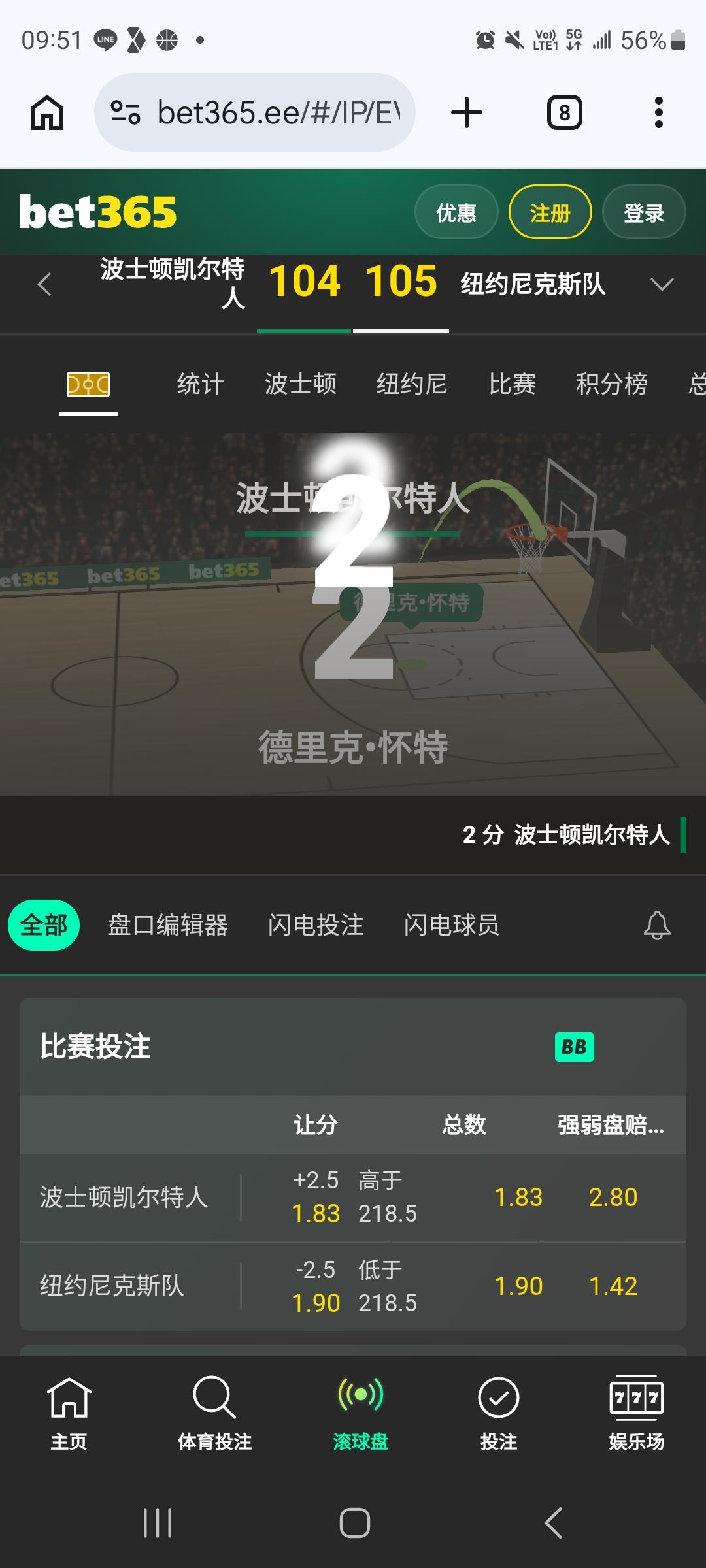 控盤精準 216.5 讓4.5 總分112:106 控的真準
