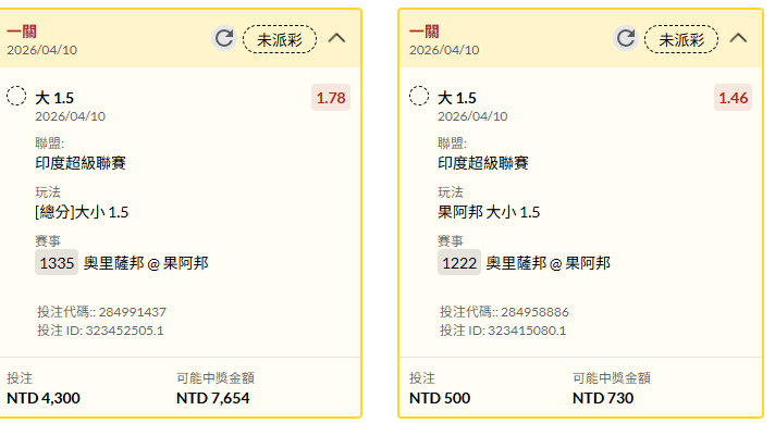 足球 >> 4/10今日場中