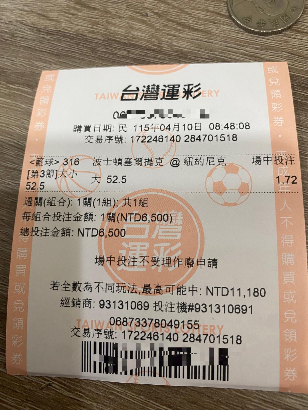 >> 第三節52.5大1.72 6500元. 刷分啦