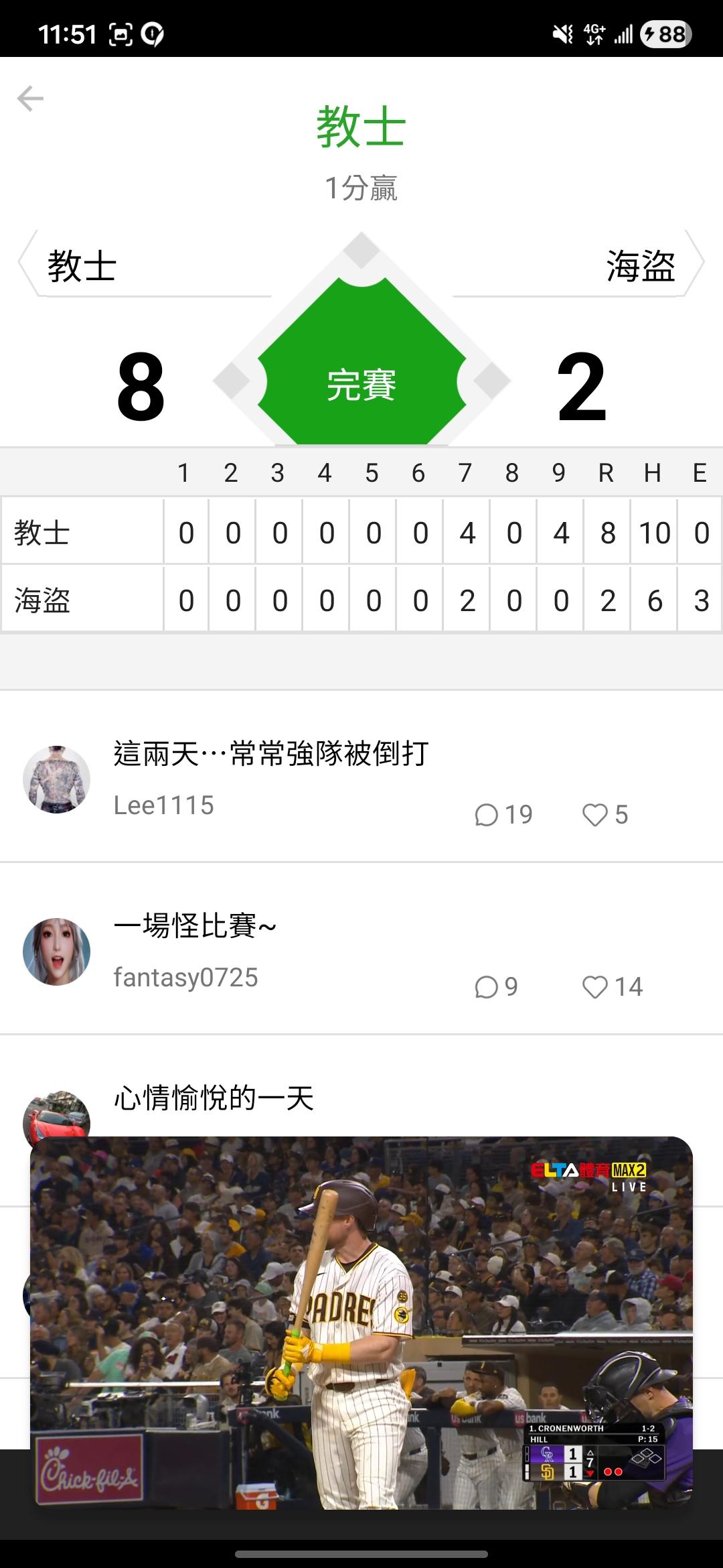 MLB >> 教士加油阿