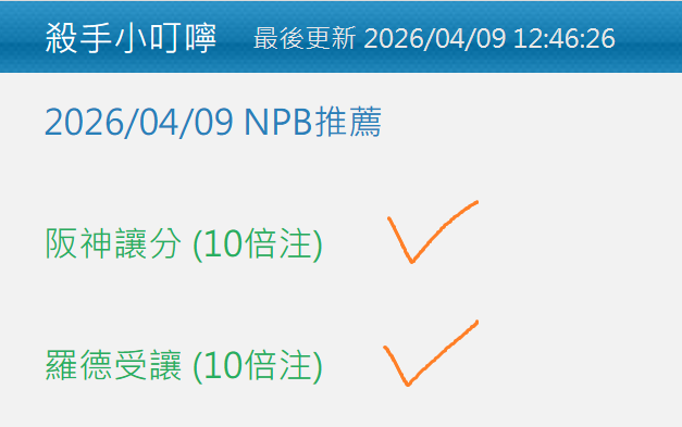 日本職棒 >> 4/10 NPB推薦【國際盤主推連過5日】【昨日國際盤 2過2】【內附台灣運彩單場】【今日特價】