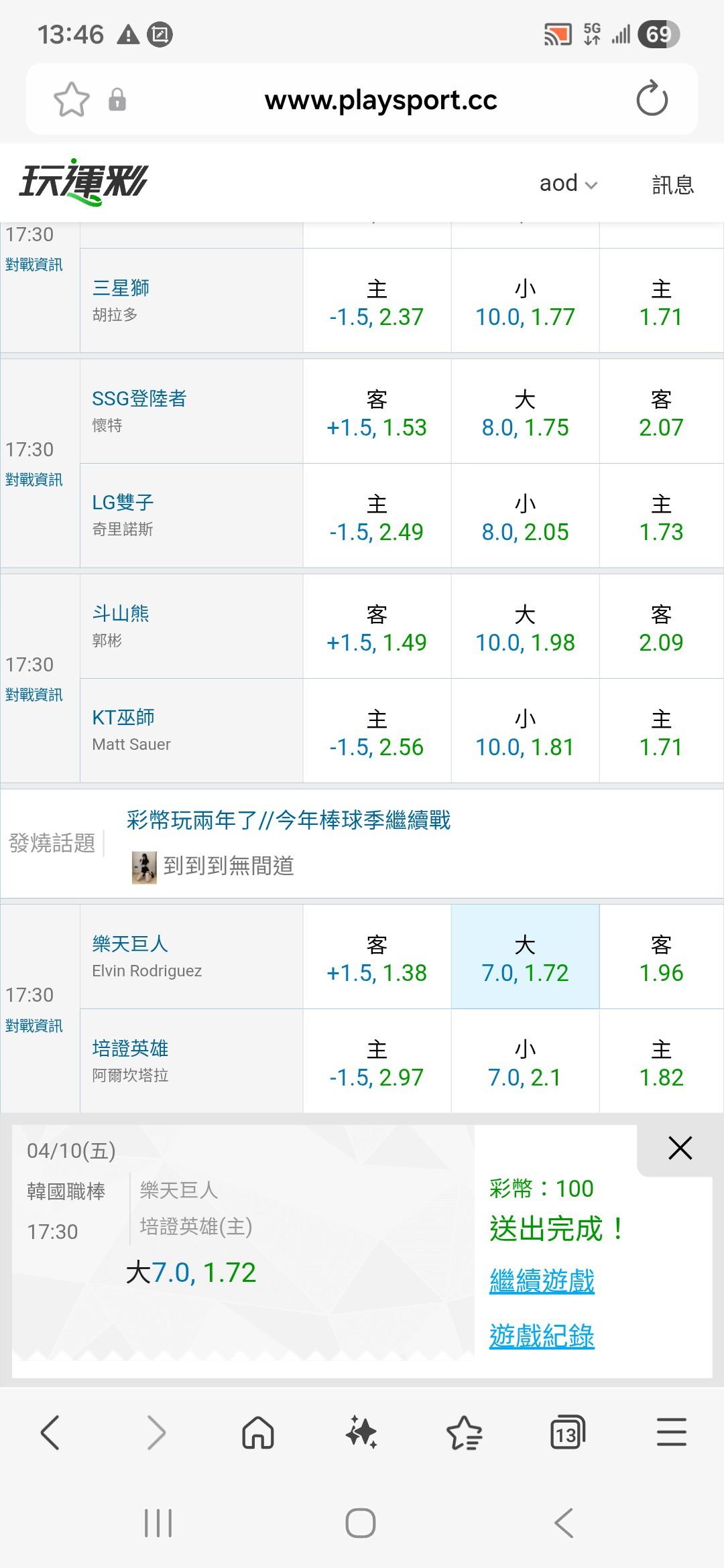 韓國職棒 >> 上次2過2,推一場免費,主推若沒有過下次免費,綠綠綠