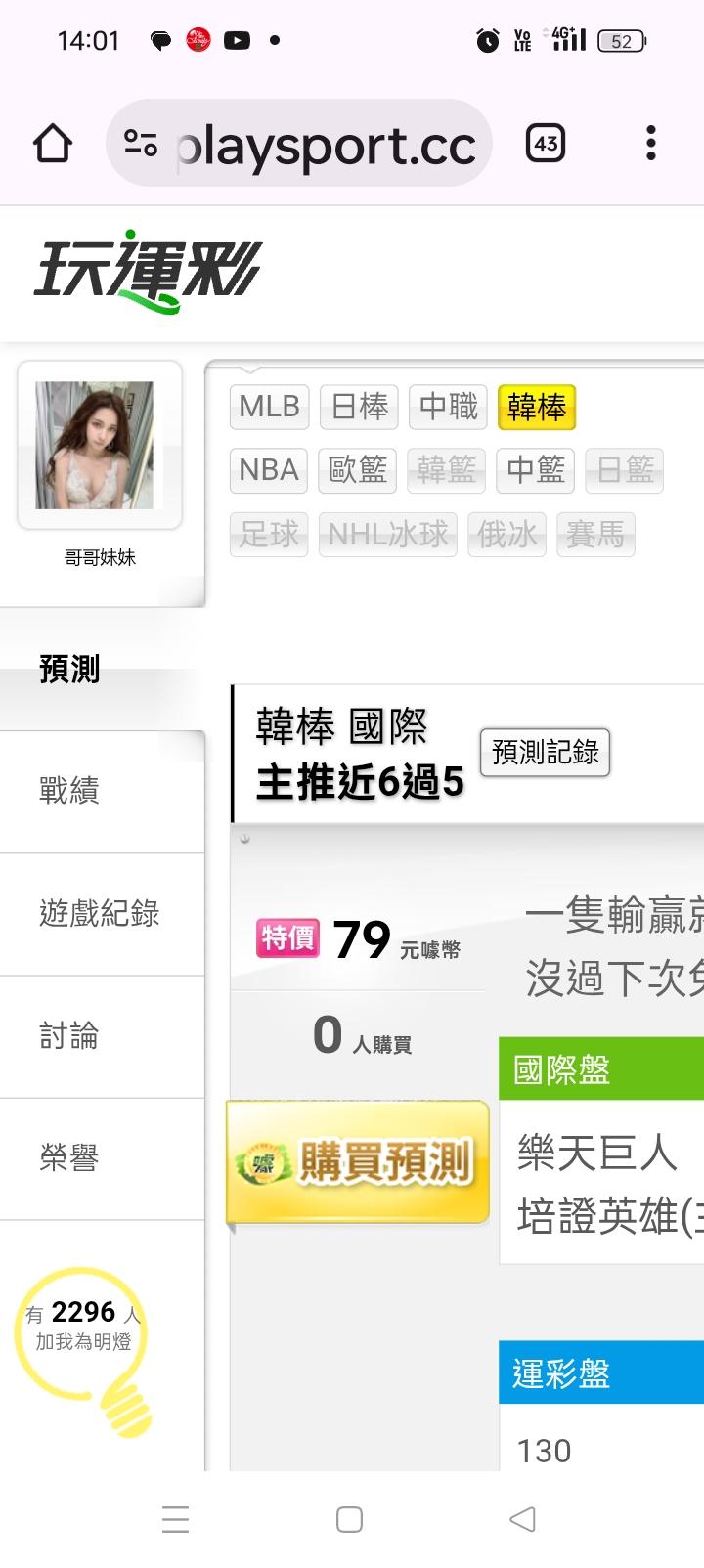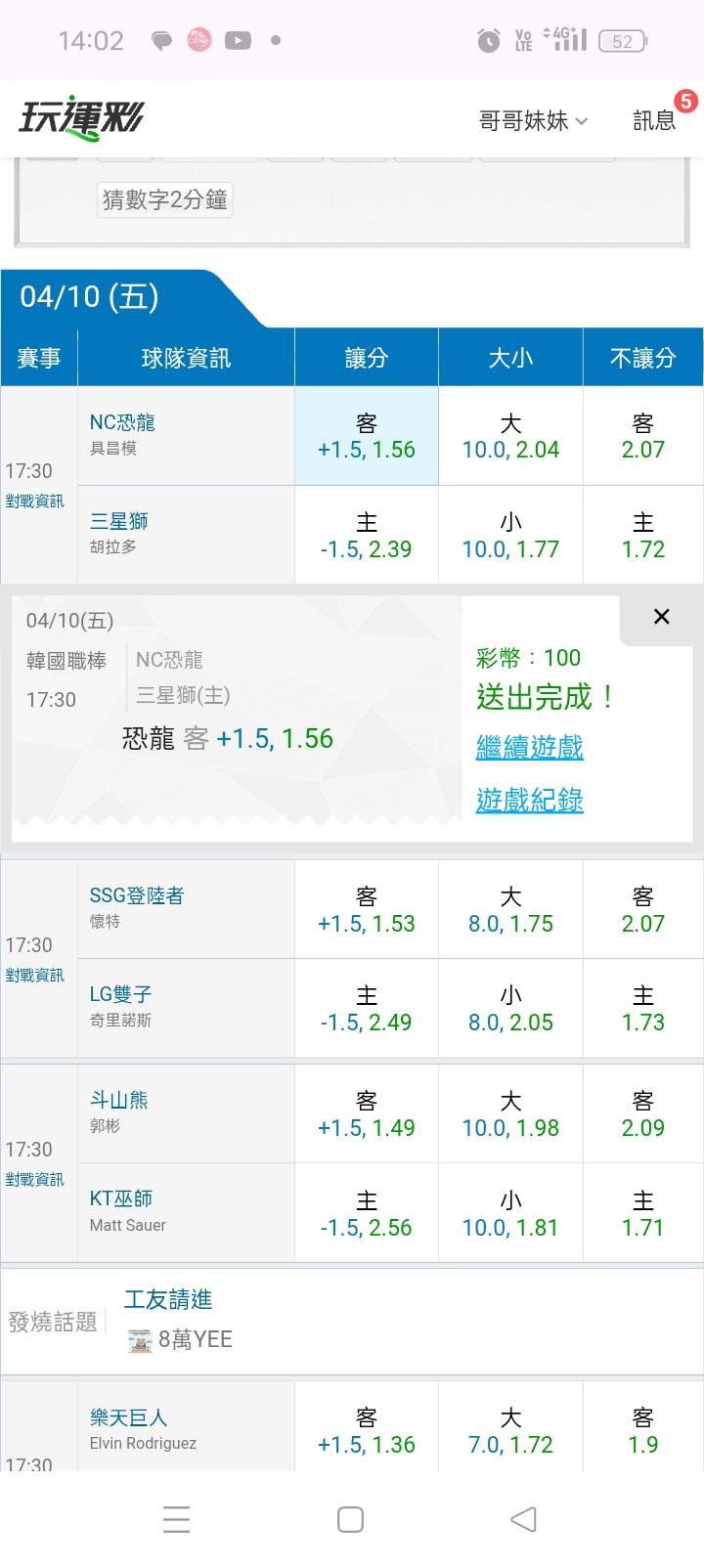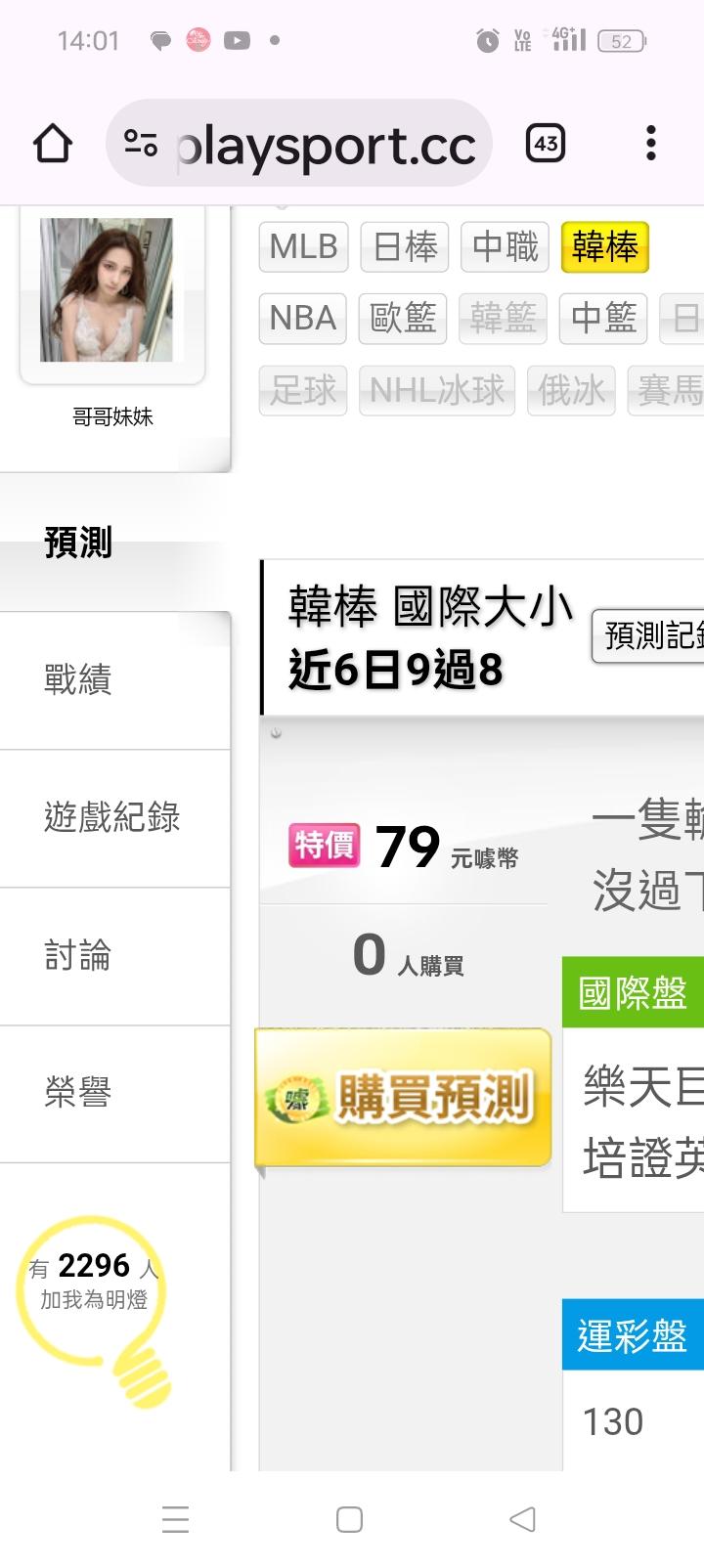 韓國職棒 >> 近6天大小分9場贏8場,今天主推大小非常有信心,沒贏下次免費🤩