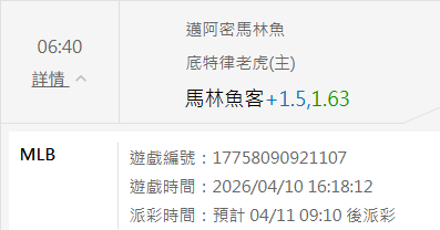 MLB >> 4/11 MLB推薦【前日國際盤 2過2】【小叮嚀有注數推薦】【內附台灣運彩單場】