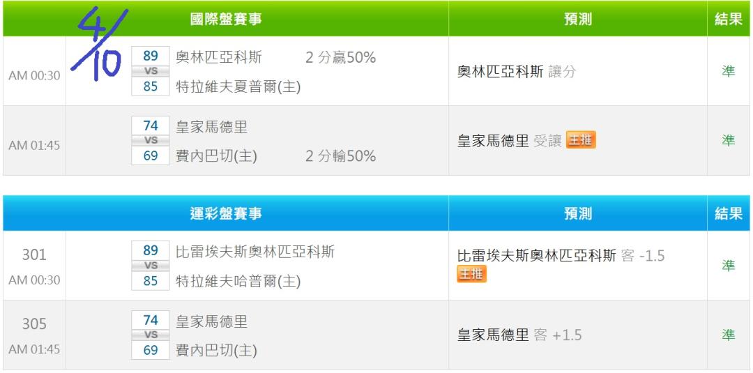 歐洲職籃 >> [今天 雙盤 4過4 大獲全勝]-[高信心場 二場決勝]-有信心 拚連2天全過