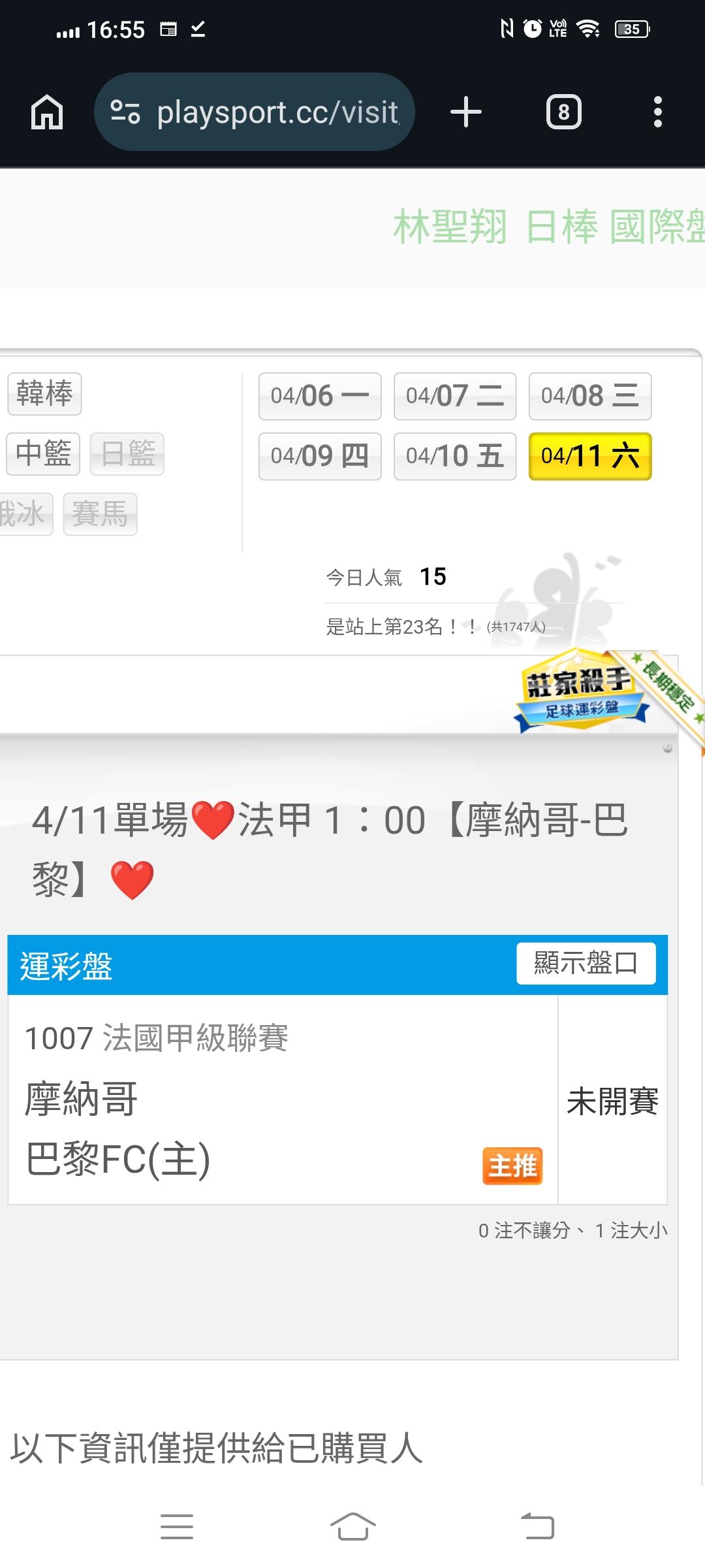 >> 這場特別有信心,4/11單場❤️法甲 1:00【摩納哥-巴黎】❤️