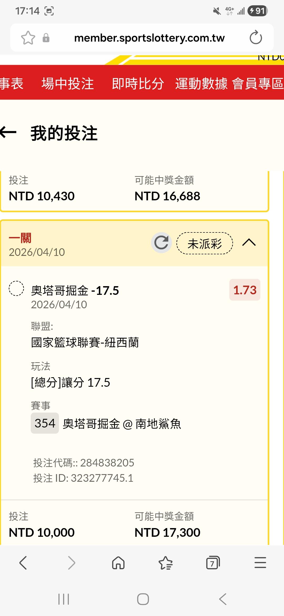 國際籃賽 >> 4/17 場中 掘金vs鯊魚 173.5小