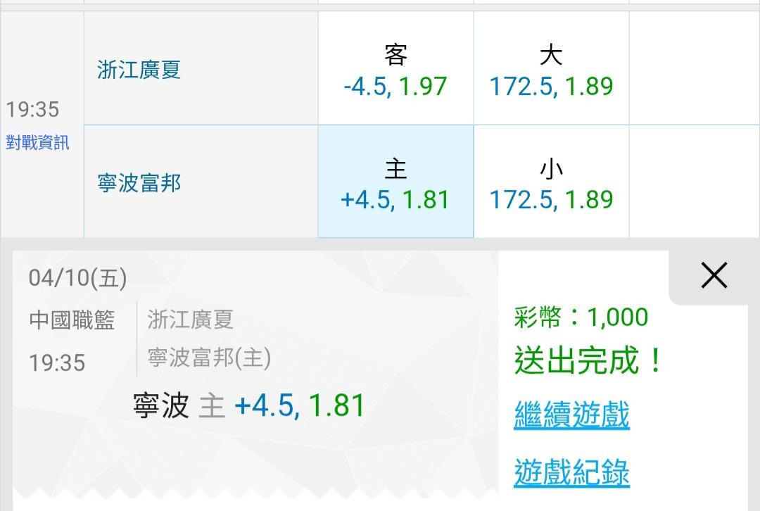 中國職籃 >> 大小分近11日18過14……今天主推一場