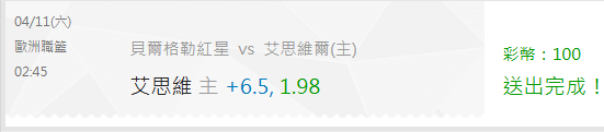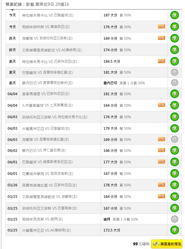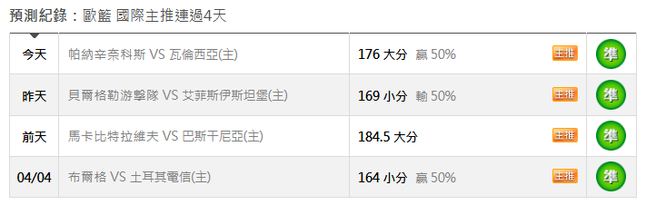 歐洲職籃 >> 4/11 連續2天2過2💰國際 主推連過4天💰國際 近9日20過16💰