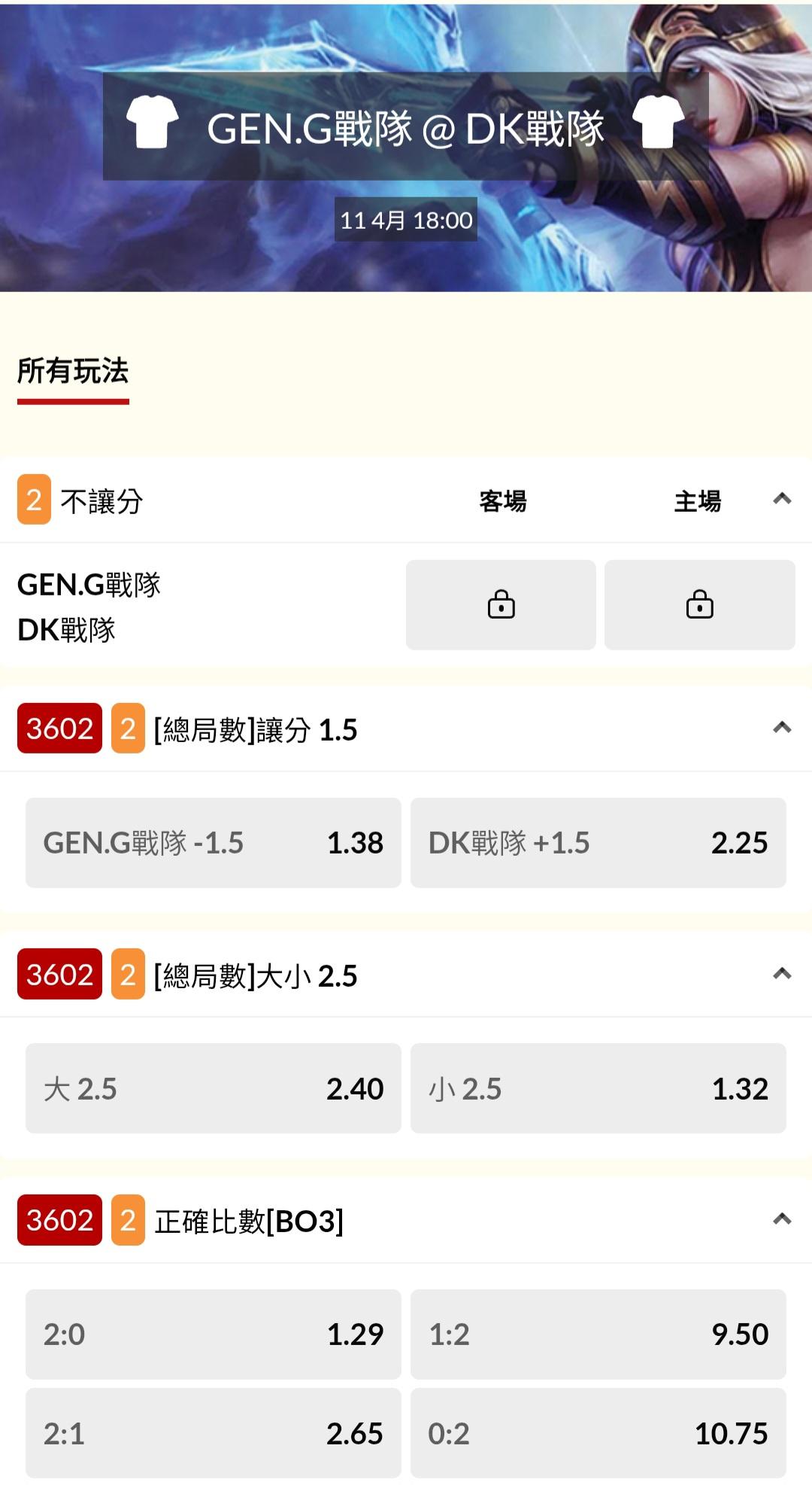 電競 >> 04/11『DRX戰隊 @ NS紅軍』『GEN.G戰隊 @ DK戰隊』