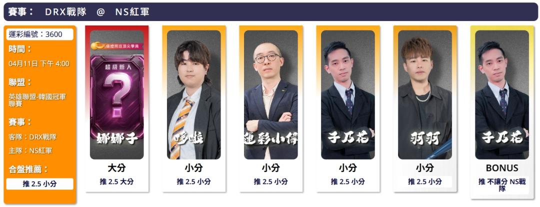 電競 >> 04/11『DRX戰隊 @ NS紅軍』『GEN.G戰隊 @ DK戰隊』