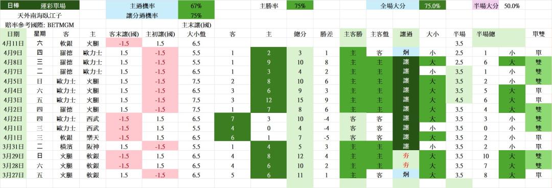 >> 4/11 日棒 運彩單場 軟銀 vs 火腿