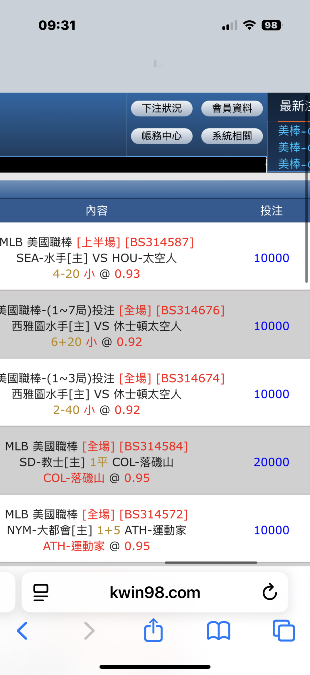 MLB >> 太空小分套餐 🈶🈴參考 假日謹慎下注