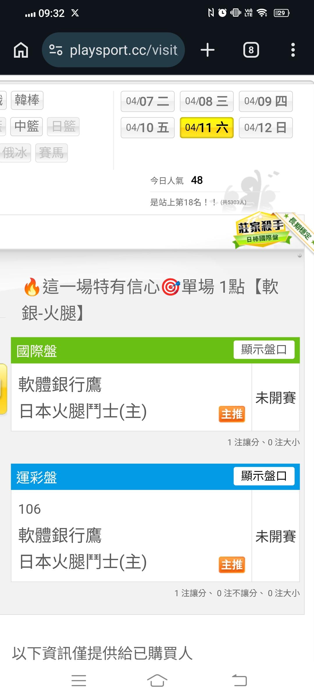 日本職棒 >> 🔥這一場特有信心🎯單場 1點【軟銀-火腿】特價回饋!