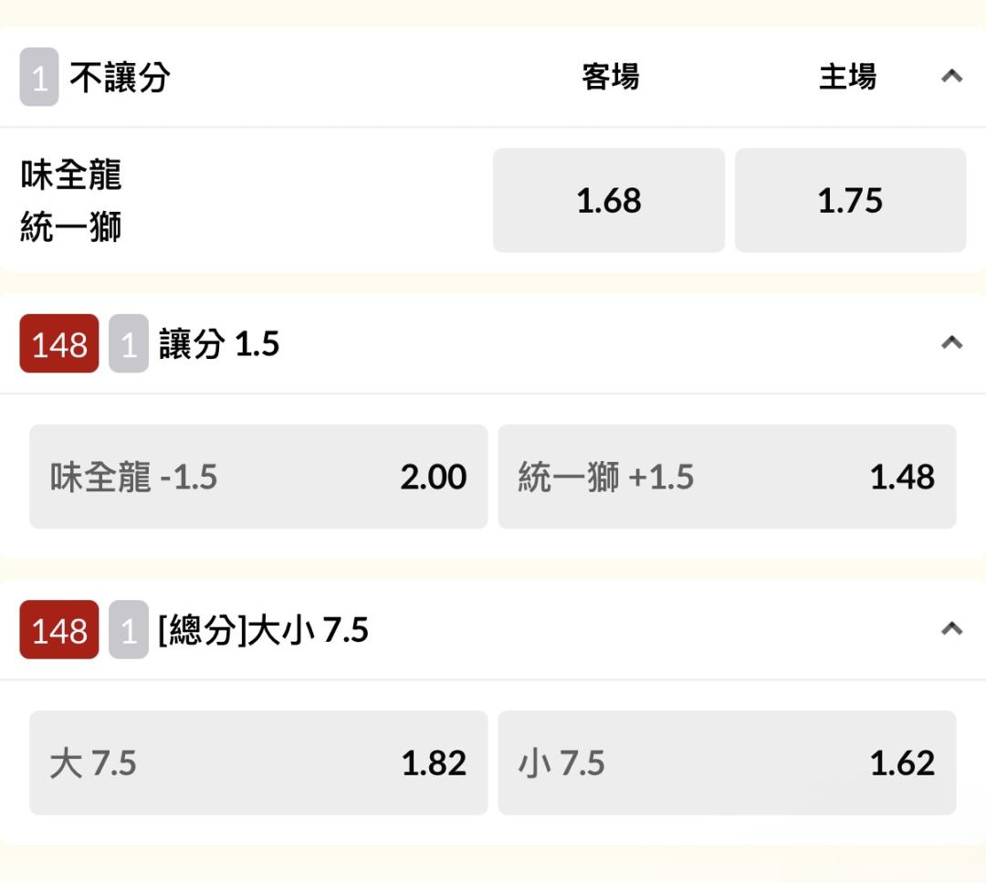 兩隊先發投手55波 7.5小可考慮 比牛棚的話 個人看法 地溝優於喵