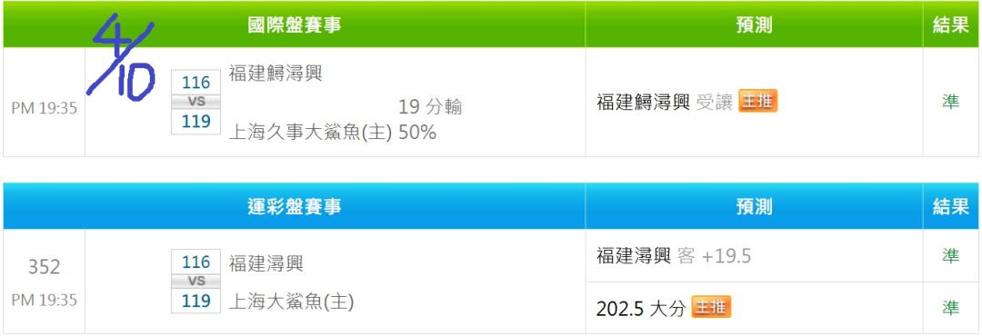 中國職籃 >> [昨天 雙盤 全過 大獲全勝]-[今天 高信心場 二場決勝] 有信心 拚連2天全過
