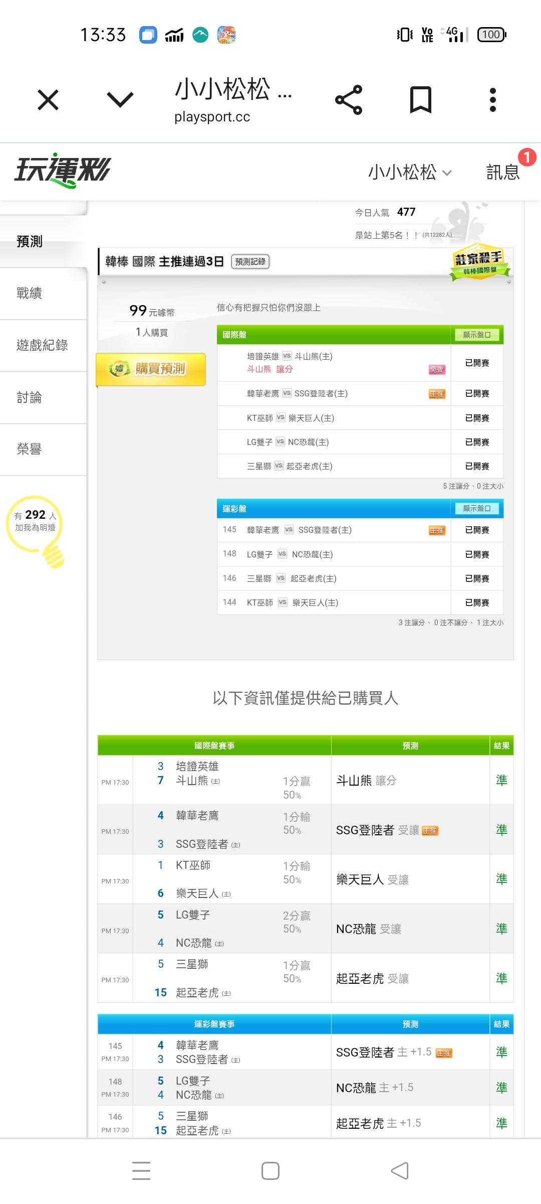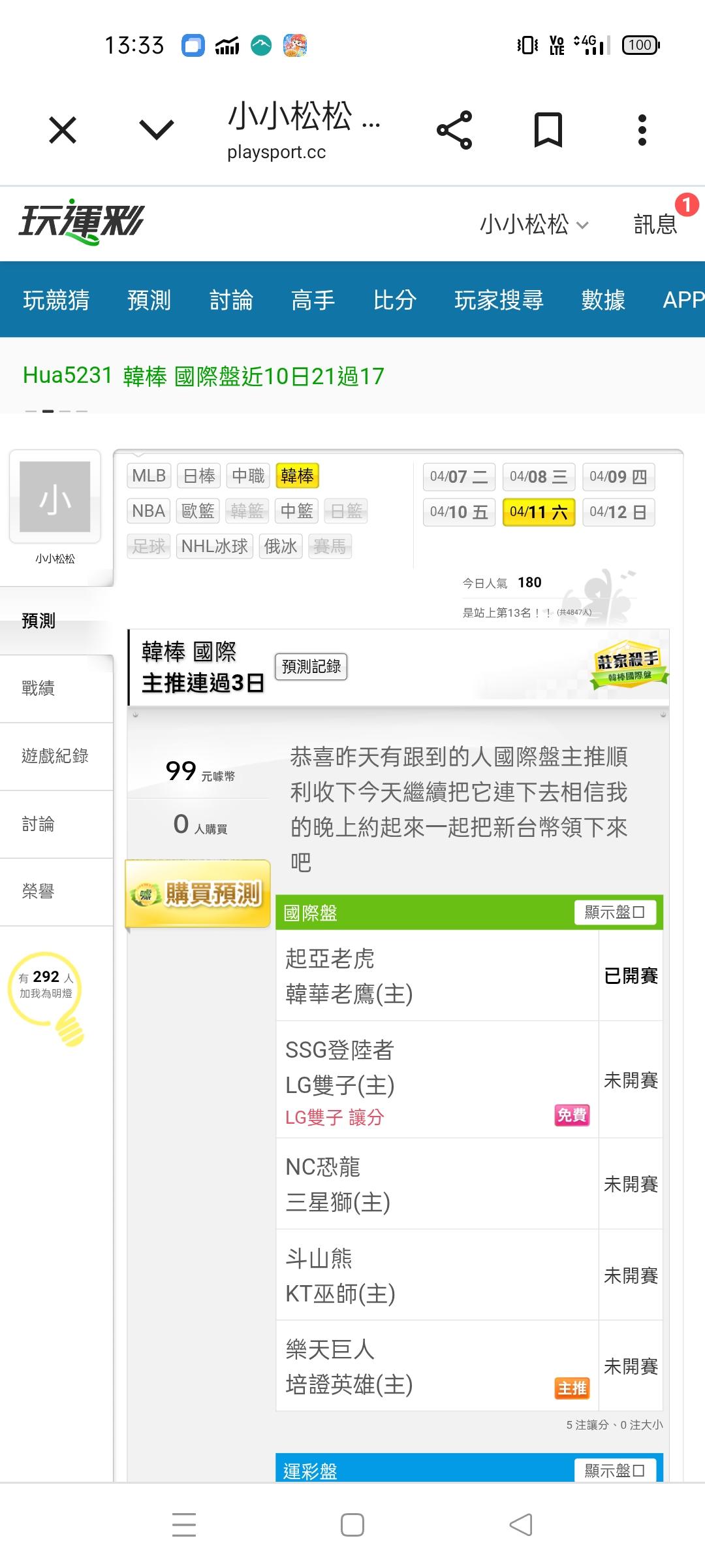 韓國職棒 >> 溫馨提醒因為最近國際盤主推連勝中而且快要開賽了4點就要開賽了很重要所以一定要跟你們講要跟著要快喔