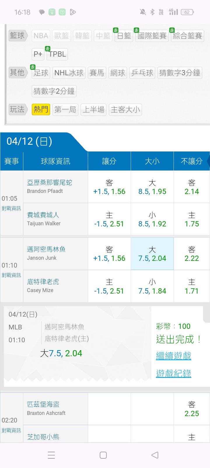 MLB >> 近八日16過15(雙主推決勝負)凌晨2:20(海盜vs小熊)大小決勝