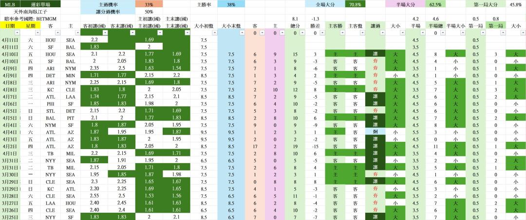 >> 4/12 MLB 運彩單場 SF vs BAL ( HOU vs SEA )