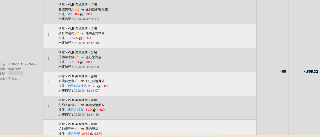 4/12 MLB 6*1 分享!喜歡的朋友請隨意享用!祝大家都能順利過關!!!