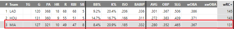 三振能力不錯 但馬林魚整體揮空率低
