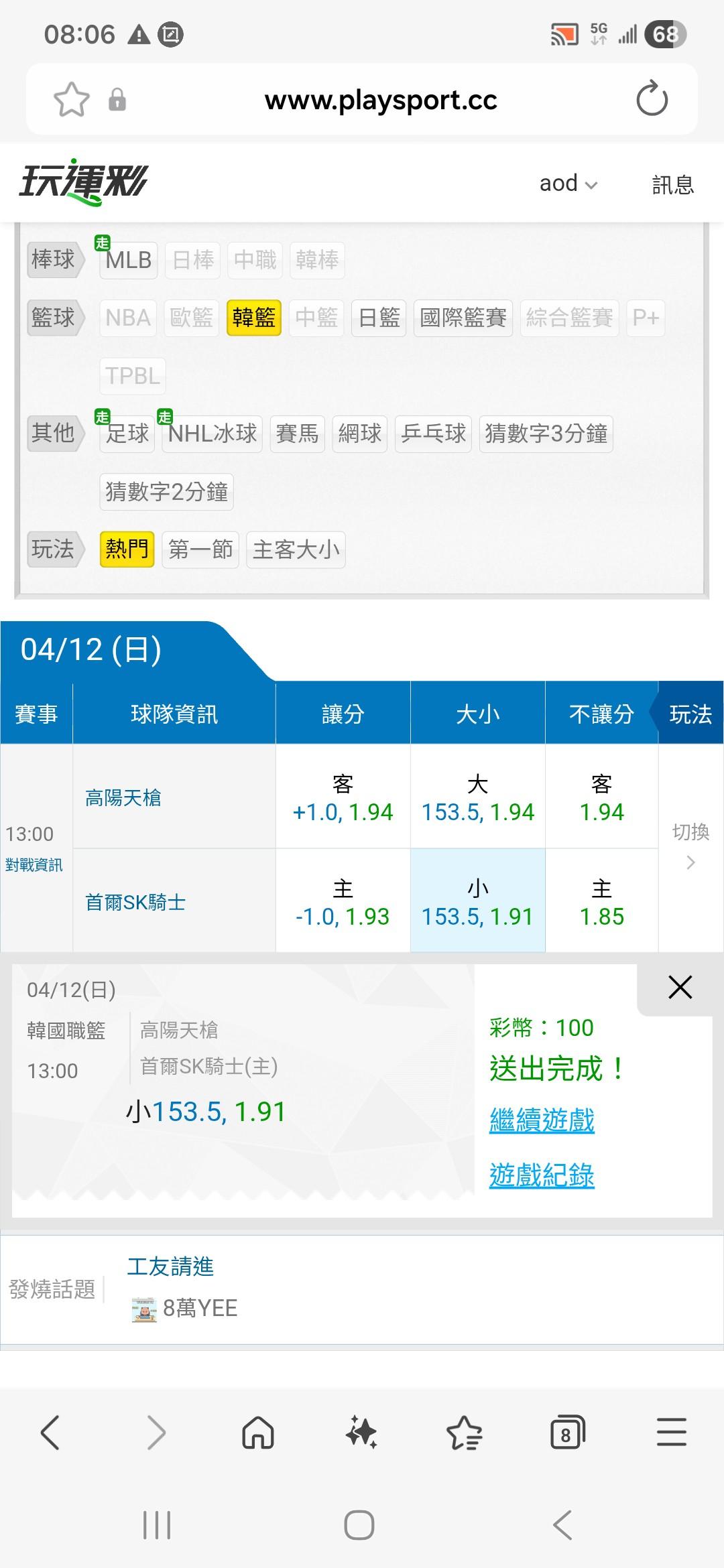韓國職籃 >> 國際主推近5過4,推一場免費,綠綠綠