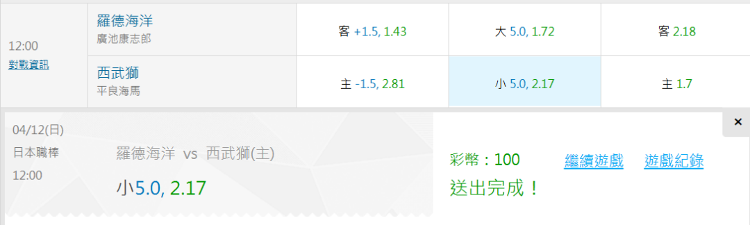 | 運彩盤賽事 |