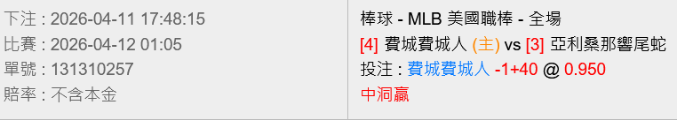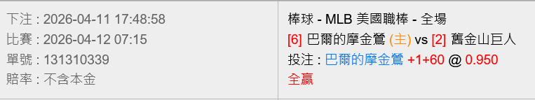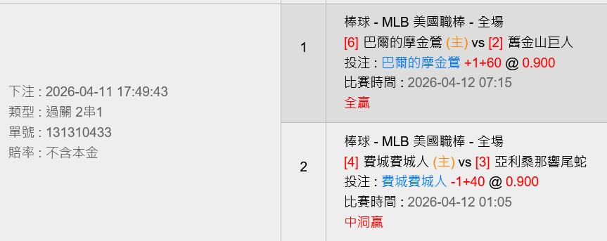 MLB >> 4/13【雙主推2過2】【國際 主推連過4天】雙主推+2X1推薦!!