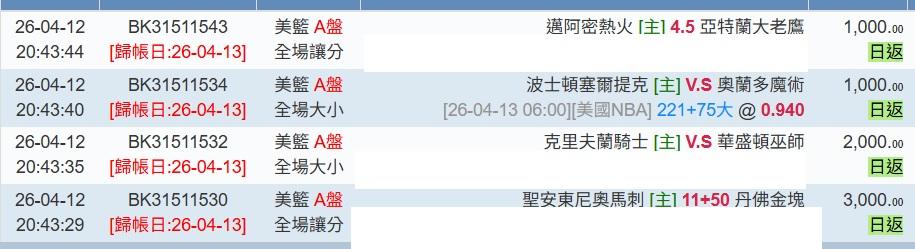 >> 4/13日NBA1場參考(國際 主推連過3日^^)