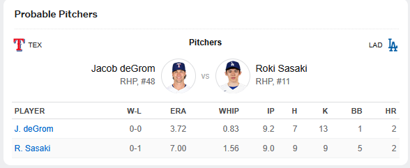 大谷不曾對戰 deGrom 變數大概就是要看大谷
