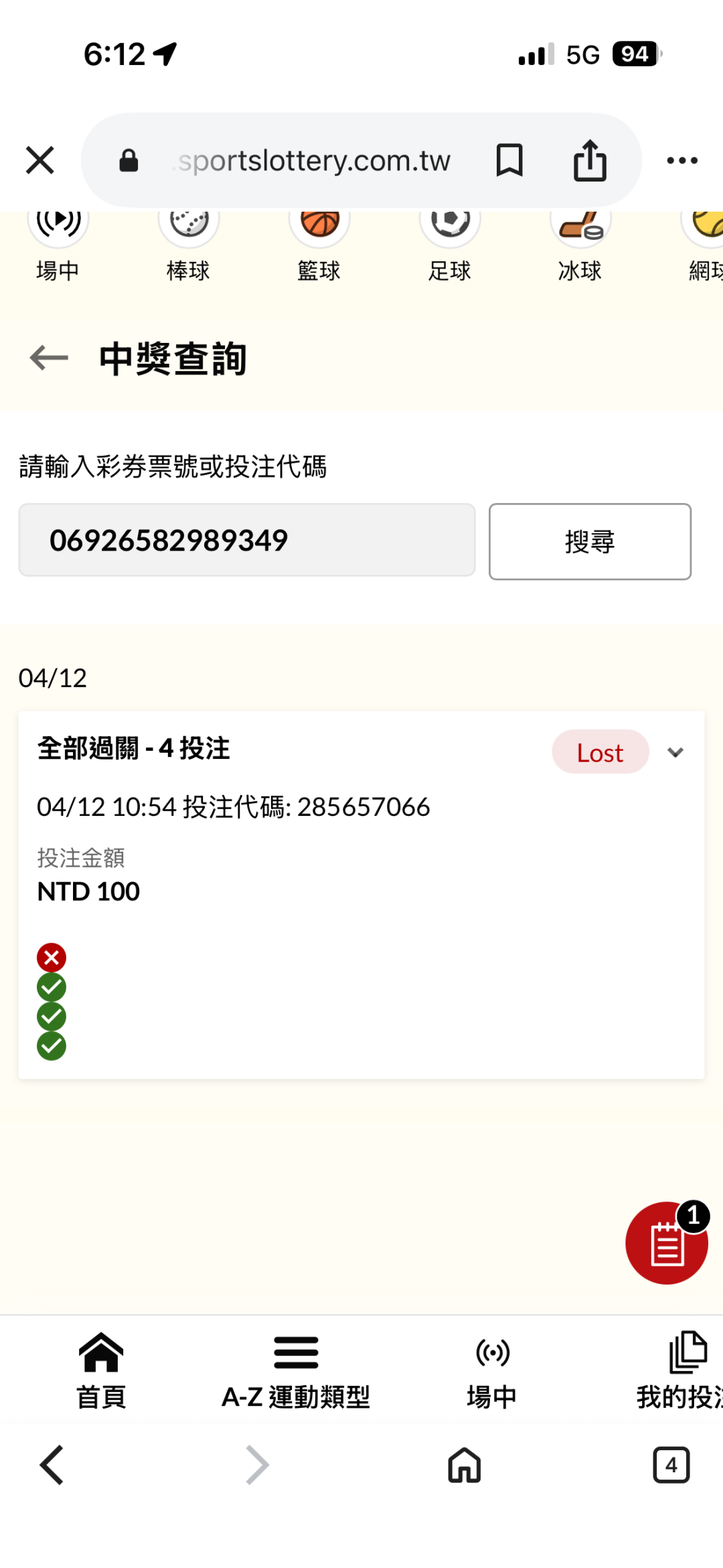 賽事結果查詢