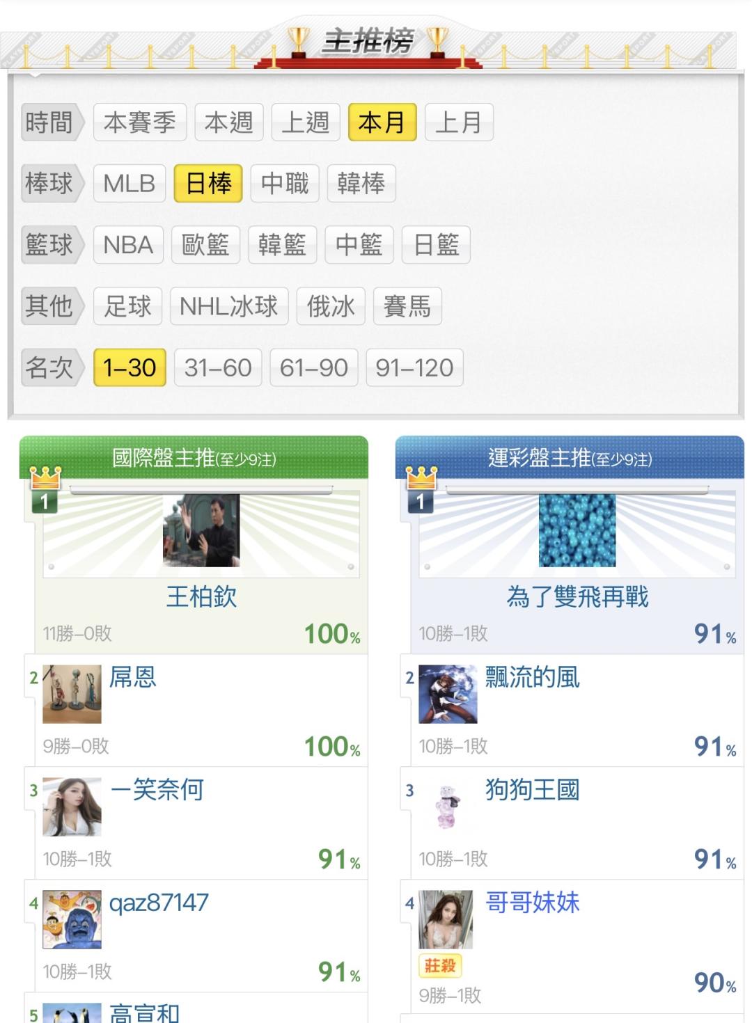 日本職棒 >> 日棒運彩本月主推勝率全站第一名,你要跟我嗎?第一名 第一名 第一名