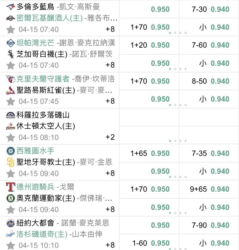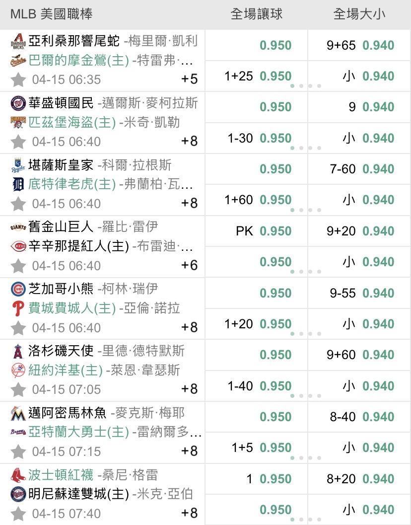 >> 4/15 美棒初盤(預祝過盤)