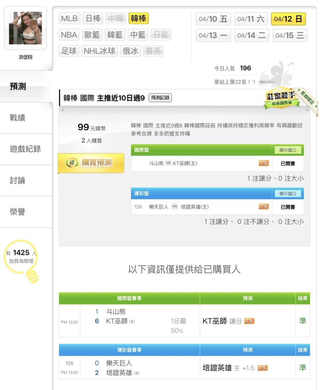 韓國職棒 >> 4/14 韓棒 國際 主推近10過9 韓棒國際莊殺 持續保持穩定獲利高勝率 有興趣歡迎參考合牌
