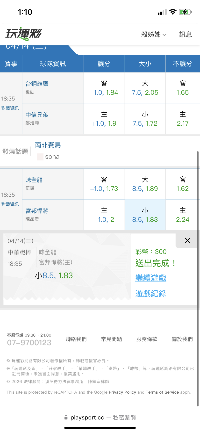 >> 中職分享(4/12 3過3、主推二連勝中)