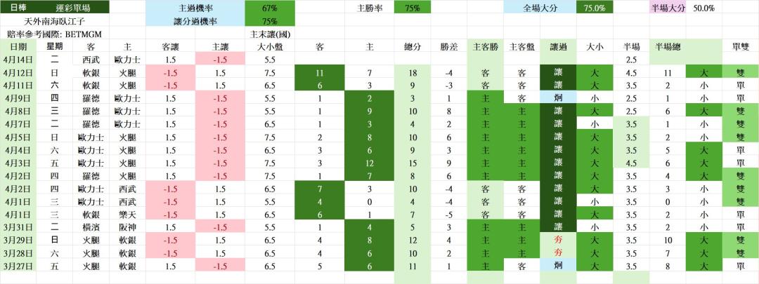>> 4/14 日棒 運彩單場 西武 vs 歐力士