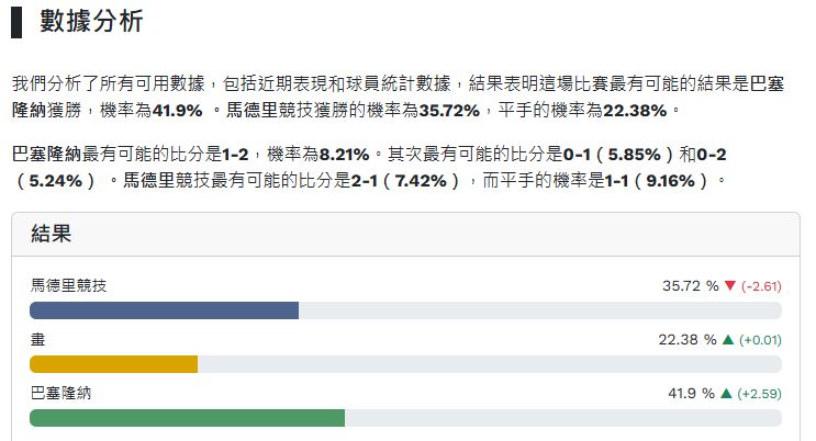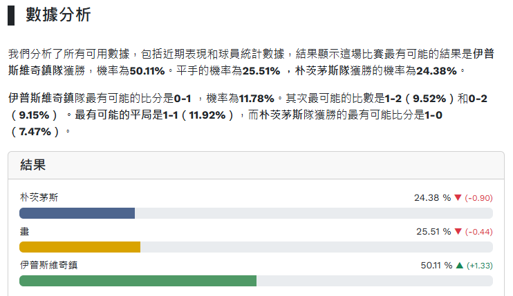 正確比數:單場★預測提示+數據分析★