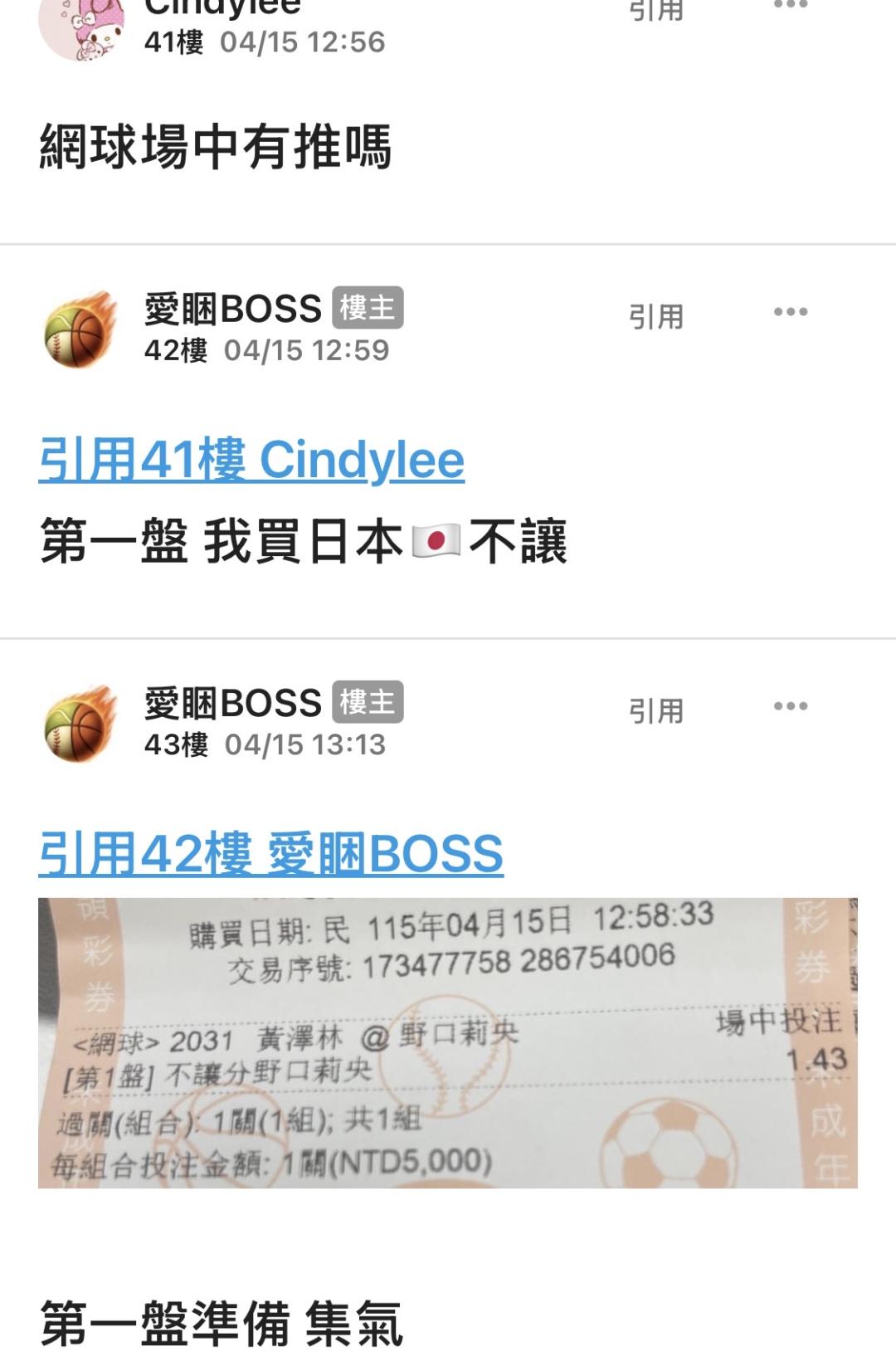 網球 >> 415/黃澤vs野口/誰敢買/我看看