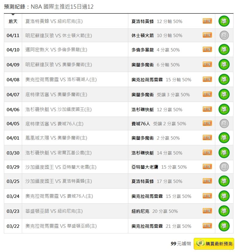 >> 4/16NBA國際主推近15日過12 今天小叮嚀分析文推薦單場:拓荒者受讓+PK+贏4分勝分差都過