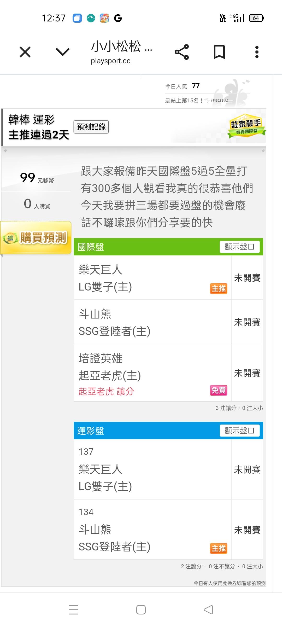 韓國職棒 >> 我不知道要跟大家說什麼我真的很高興這200多個人有觀看的我預測我很恭喜你們謝謝你們的信任明天繼續